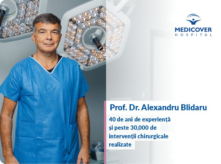 Prof. Dr. Blidaru este Medic Primar in Chirurgie Generala si Oncologie Medicala, specialist in Chirurgia Plastica si Reconstructiva, fiind supraspecializat in Chirurgie Oncologica si Ginecologie Oncologica.