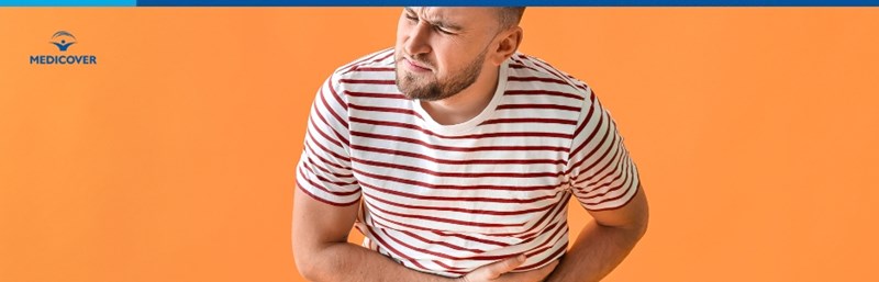 - „Durere in bara” intensa la nivelul abdomenului superior, cu tendinta de iradiere in posterior (partea dreapta sub coaste)
