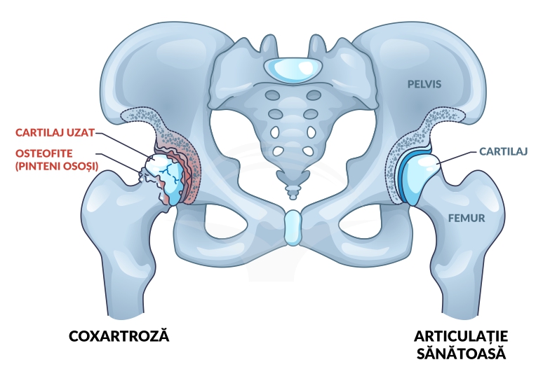 Coxartroza reprezinta o patologie degenerativ distrofica a articulatiei soldului care afecteaza mai frecvent persoane de varsta medie (peste 40 de ani) si inaintata (peste 65 de ani) determinand aparitia durerii si limitarea mobilitatii articulare.