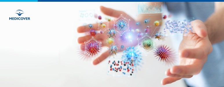 Bacteriile constituie organisme monocelulare cu structura simpla care include nucleu difuz, citoplasma, membrana citoplasmatica si un perete celular. Bacteriile reprezinta microorganisme unicelulare ubicvitare care se regasesc peste tot in natura, dar si la nivelul organismului uman. Anumite tipuri de bacterii prezinta activitate benefica si colonizeaza tegumentele si mucoasele umane. Acestea sunt implicate in procese de digestie alimentara, de distructie a germenilor patogeni sau de sinteza a anumitor vitamine indispensabile omului. Doar 1% din bacterii sunt patogene si in anumite conditii favorizante, pot determina afectiuni specifice.