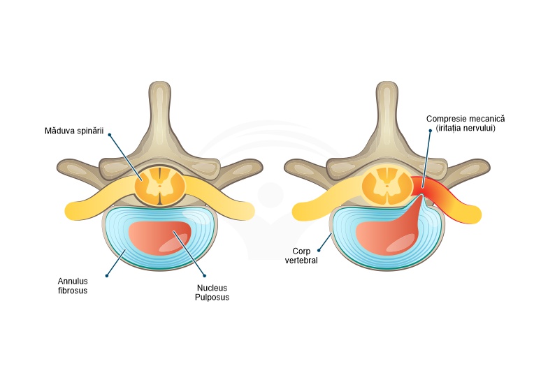 - Senzatii de furnicaturi, amorteala sau slabiciune in teritoriul deservit de nervul pensat prin hernierea nucleului pulpos.