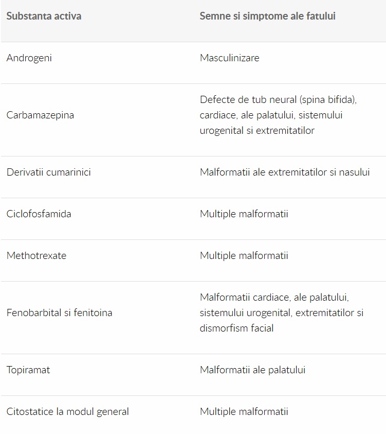 Preparate cu inalt potential teratogen care cresc riscul de aparitie al malformatiilor la fat cu aproximativ 30%