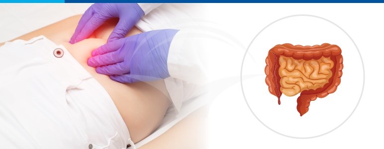 - Distensia abdominala secundara acumularii materiilor fecale si a gazelor intestinale;