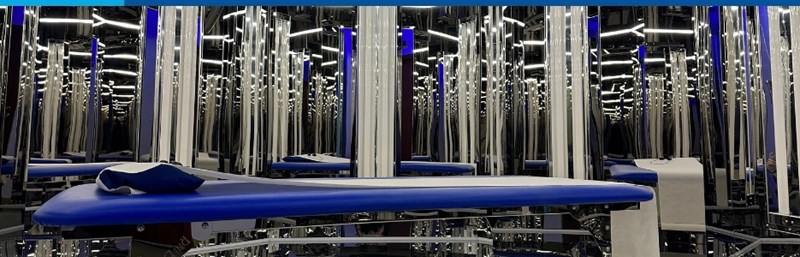 Camera Blu Room este construita in forma de octagon, este acoperita de oglinzi cu 9 lampi si un pat confortabil in mijloc. Pacientul se intinde pe acest pat si este expus in totala siguranta la un camp nepolarizat. Tehnologia Blu Room constituie un mediu terapeutic de expunere la raze ultraviolete sigur pentru pacient.