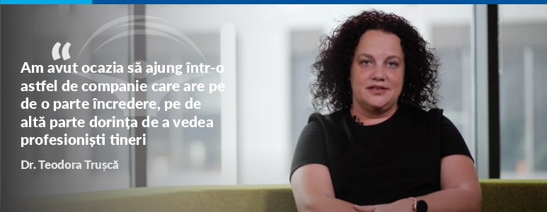 Sunt recunoscatoare pentru ca am avut ocazia sa ajung intr-o astfel companie care are pe de o parte incredere, pe de alta parte dorinta de a vedea profesionisti tineri, la inceput de drum care se pot afirma si pot dovedi ca pot schimba lucrurile intr-un sens pozitiv.