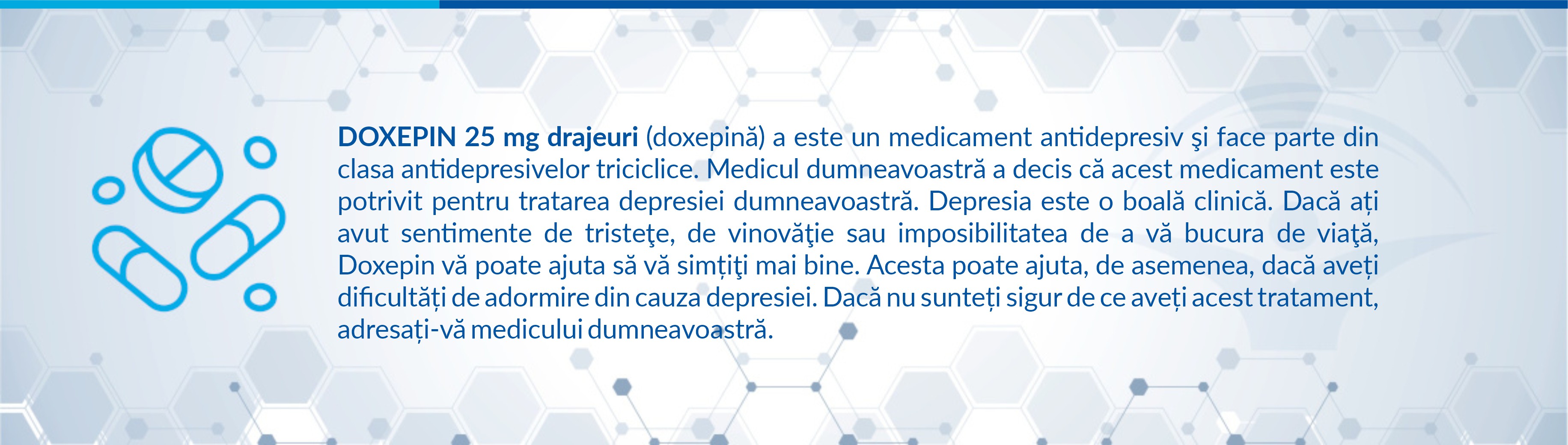 Medicul dumneavoastra a decis ca acest medicament este potrivit pentru tratarea depresiei dumneavoastra. Depresia este o boala clinica. Daca ati avut sentimente de tristete, de vinovatie sau imposibilitatea de a va bucura de viata, Doxepin va poate ajuta sa va simtiti mai bine. Acesta poate ajuta, de asemenea, daca aveti dificultati de adormire din cauza depresiei. Daca nu sunteti sigur de ce aveti acest tratament, adresati-va medicului dumneavoastra.