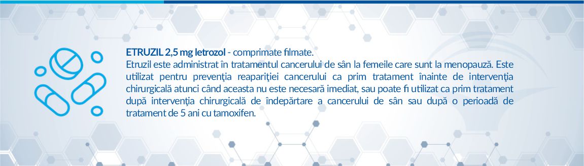 Etruzil contine o substanta activa numita letrozol. Aceasta apartine unui grup de medicamente numit inhibitori de aromataza. Este un tratament hormonal (sau “endocrin”) folosit in tratarea cancerului de san. Dezvoltarea cancerului de san este in mod frecvent stimulata de estrogeni, care sunt hormoni sexuali feminini. Etruzil scade cantitatea de estrogeni prin blocarea unei enzime (“aromataza”) implicata in producerea estrogenilor şi astfel poate bloca dezvoltarea cancerului de san care necesita estrogeni pentru a se extinde. Ca o consecinta, celulele tumorale işi incetinesc sau işi opresc creşterea şi/sau raspandirea in alte parti ale organismului.