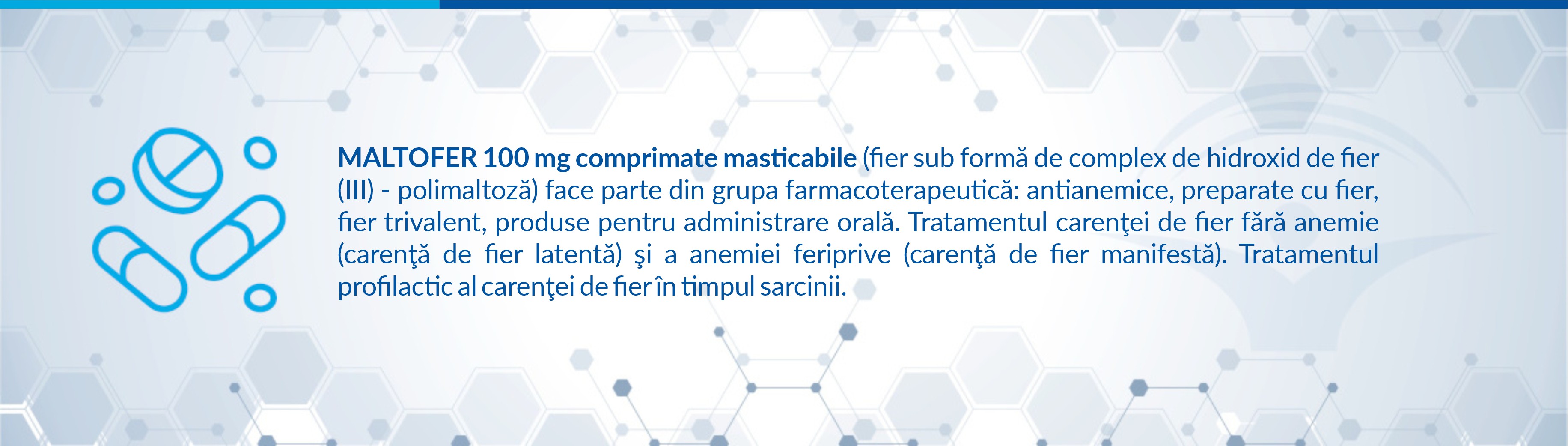 Inainte sa utilizati Maltofer, adresati-va medicului dumneavoastra sau farmacistului. Informatii pentru diabetici: 0,03 unitati de paine pe comprimat masticabil.