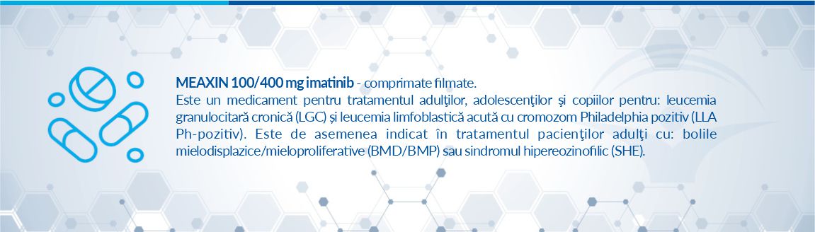 - Leucemia limfoblastica acuta cu cromozom Philadelphia pozitiv (LLA Ph-pozitiv). Leucemia este un cancer al globulelor albe ale sangelui. De obicei, aceste globule albe ajuta organismul sa lupte impotriva infectiilor. Leucemia limfoblastica acuta este o forma de leucemie in care anumite globule albe anormale (denumite limfoblaşti) incep sa se inmulteasca necontrolat. Meaxin inhiba creşterea acestor celule.